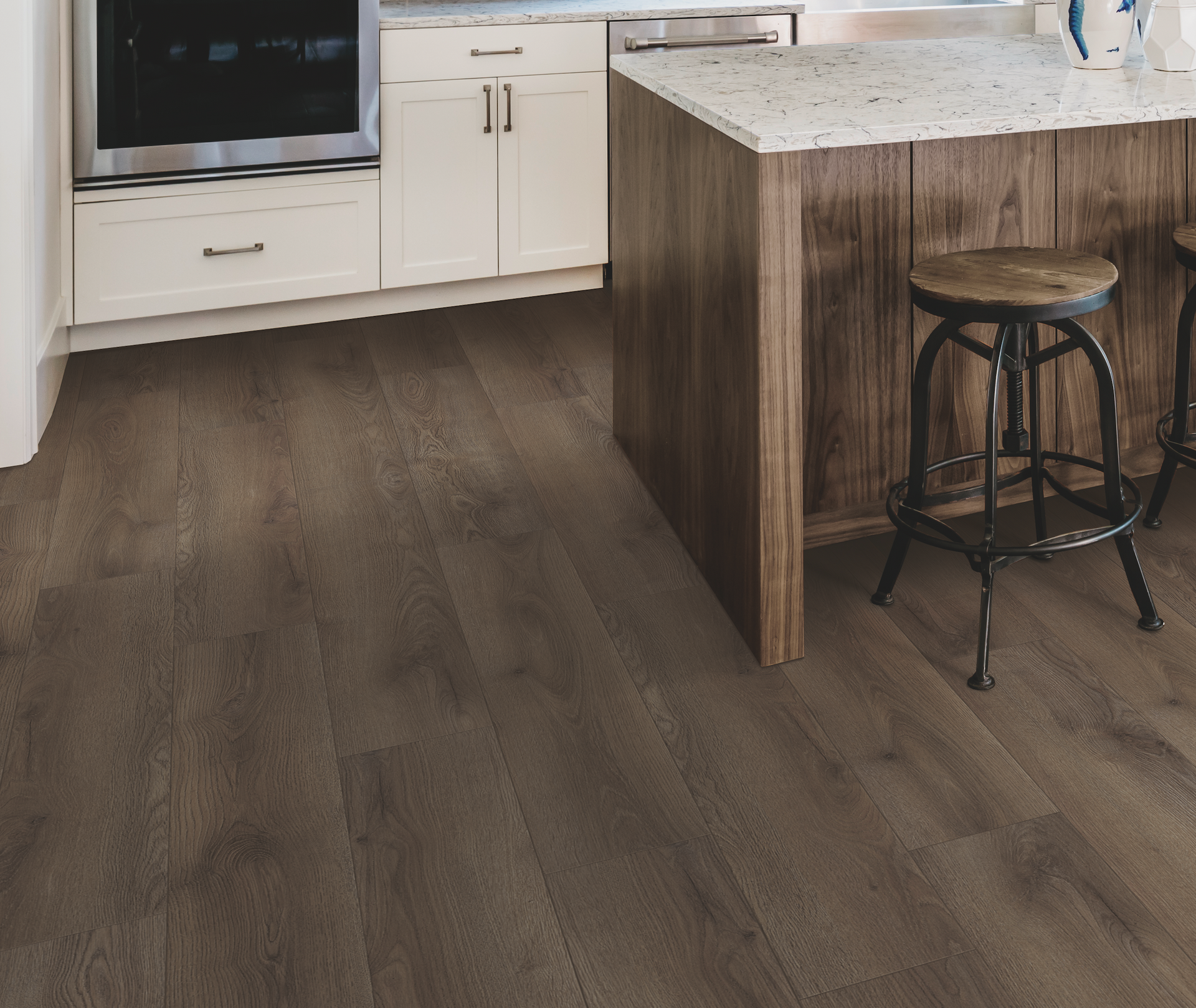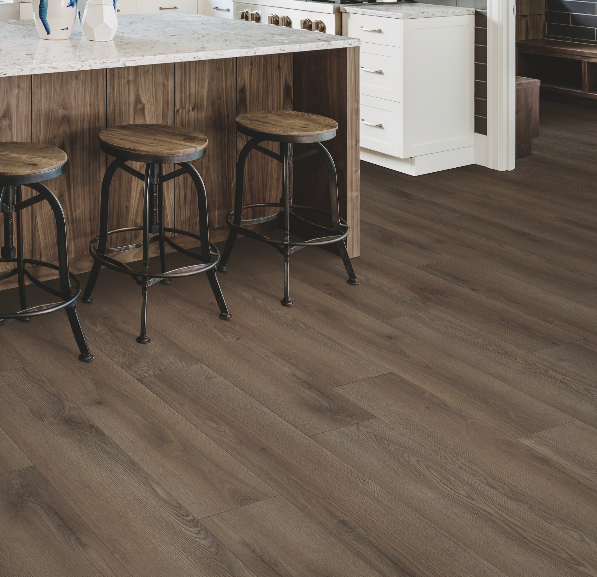 Ridgeline 12 series is a water resistant, high-density fiber core laminate flooring available in four styles. Designed with 8-inch plank widths, a matte finish, and a painted bevel to complement current design trends. It is water resistant and boasts an AC4 scratch resistant rating making it perfect for active families with kids and pets. It also includes an attached underlayment for added acoustical benefits. PVC Free, GREENGUARD Gold Certified, and CARB II Compliant.