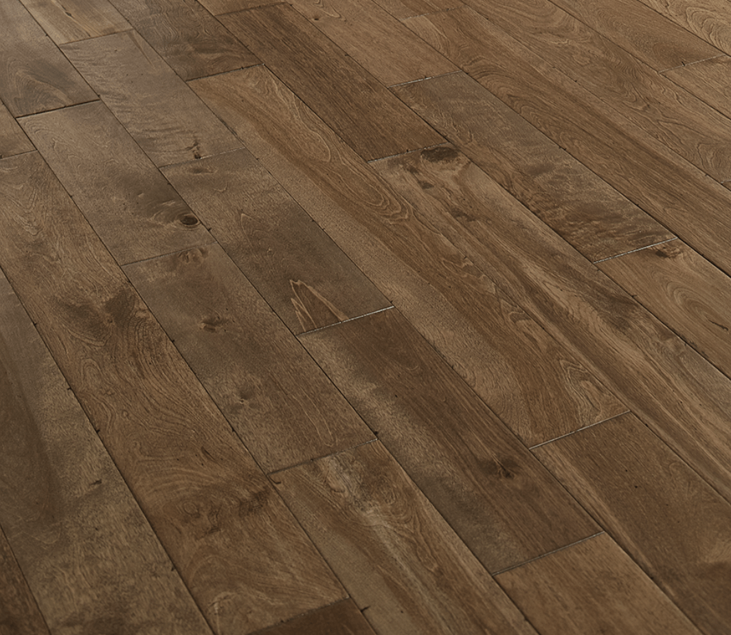 Heritage Plank is one of our most popular series. It features a rustic hand-scraped birch species with artisan chatter marks, wormholes, and pillowed edges in 4 3/4-inch wide planks. It's manufactured to the highest standards using an eco-friendly Treffert® finish with aluminum oxide for added durability and scratch resistance.