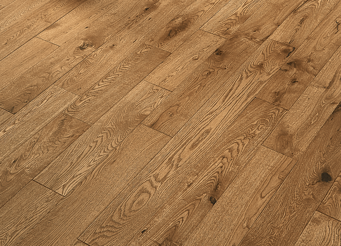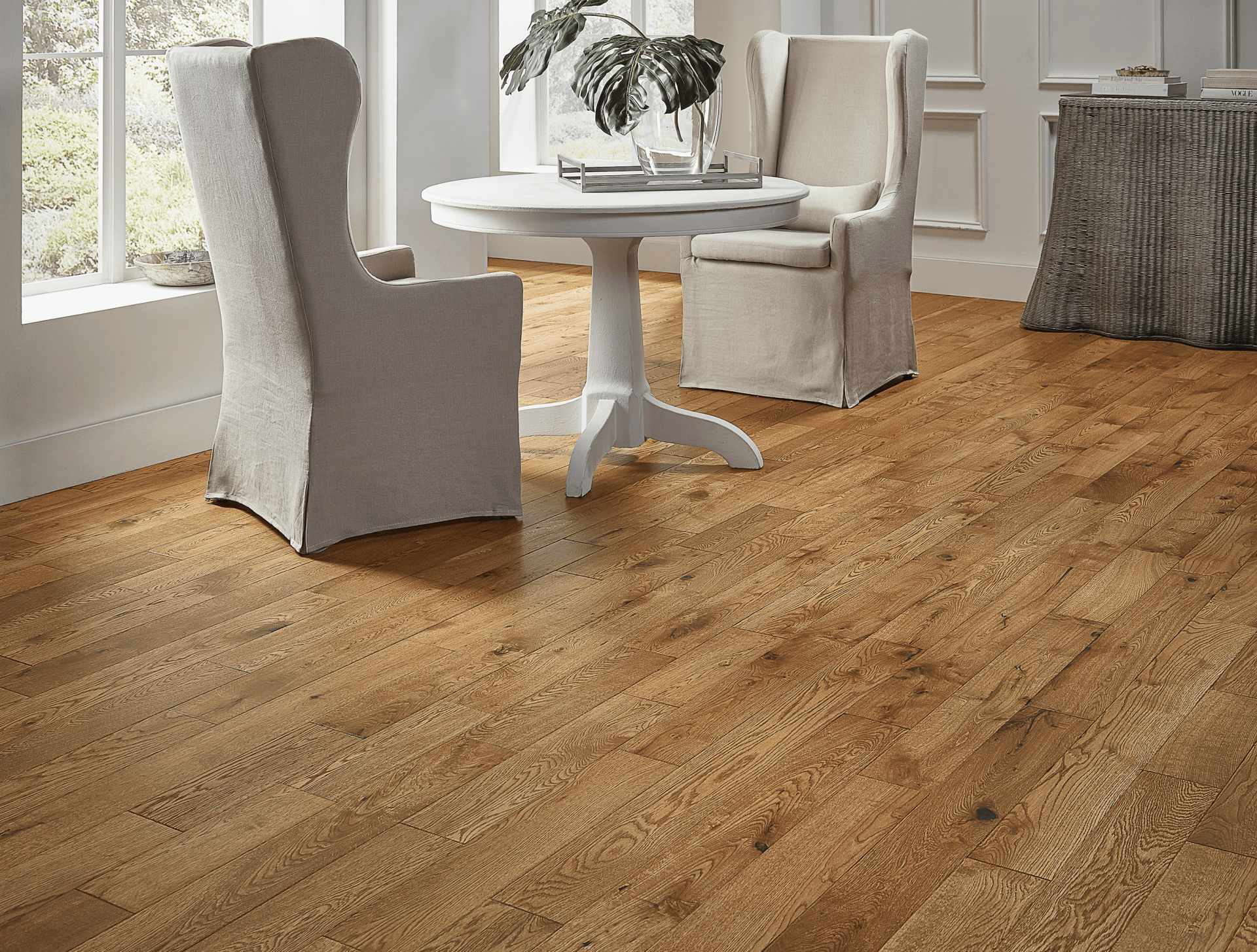 Old Virginia is a modern twist on the traditional oak floor. It has a lightly wire-brushed texture with a low gloss finish. It features a micro-bevel edge and a real oak veneer. The core's made of heavy-duty finger-jointed wood construction with a 3mm oak veneer. Old Virginia Oak is one of the few solid format hardwood products on the market approved for installation over concrete with an approved adhesive. For exceptional quality and durability, choose Old Virginia Oak for your next flooring project.