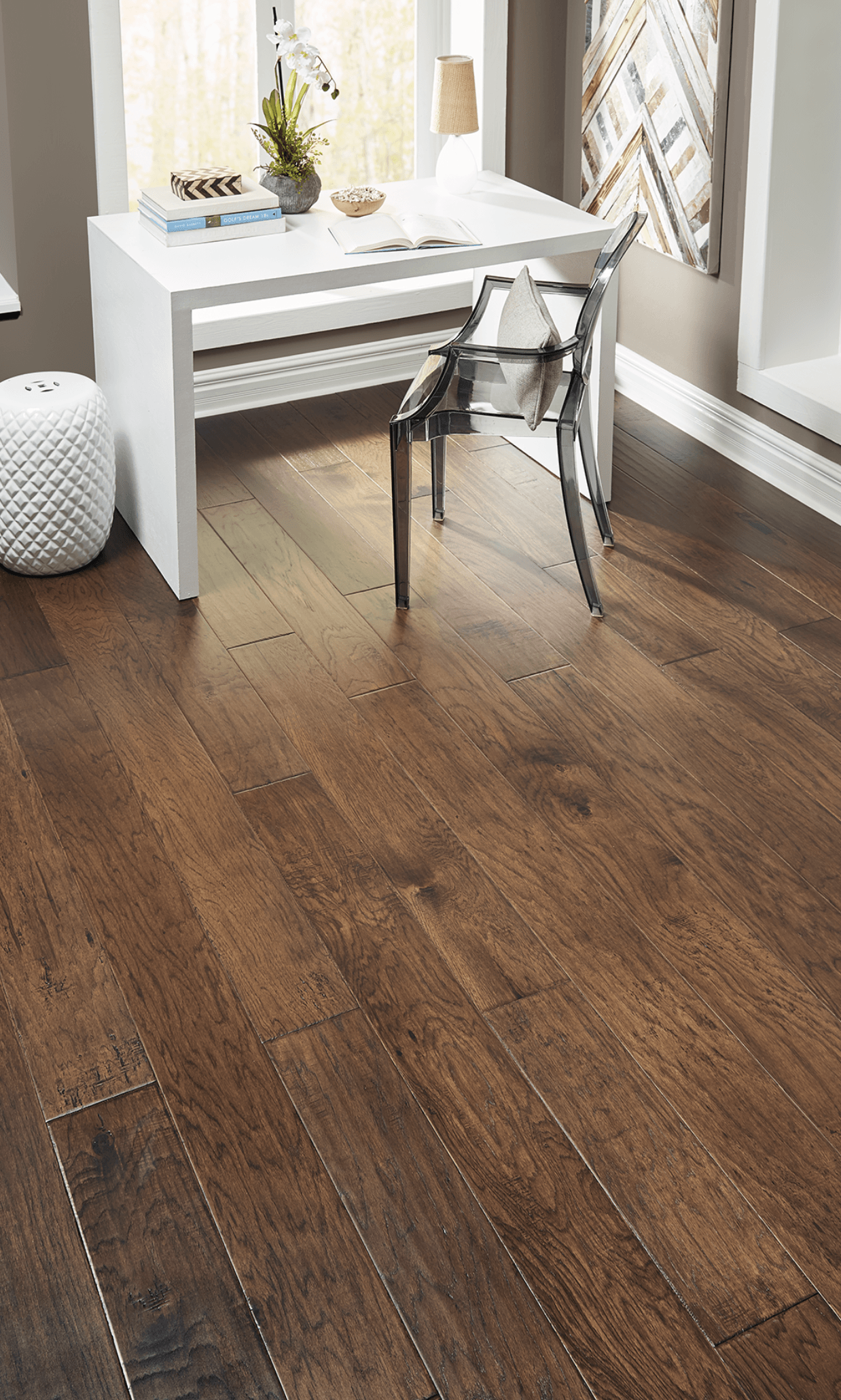 Flint River Hickory is a charming wide plank floor with lots of character. It features hand-scraped textures, chiseled edges, and beautiful color variations that can only be achieved with real hickory. This species is very durable and works great in active environments. It is manufactured to the highest standards using an eco-friendly Treffert® finish with aluminum oxide for added durability and scratch resistance. Add the beauty of real hardwood to any home with Flint River Hickory by Choice Flooring.