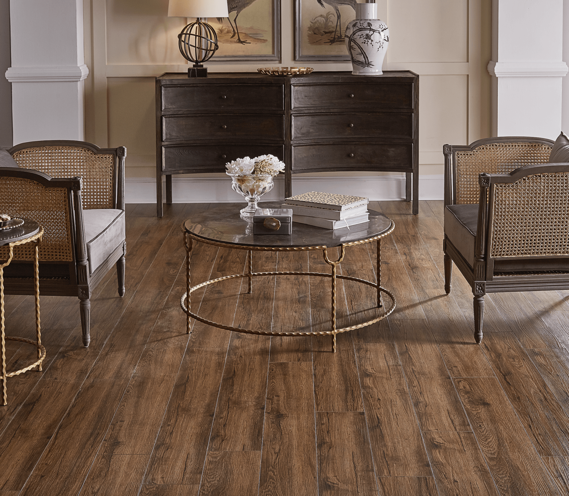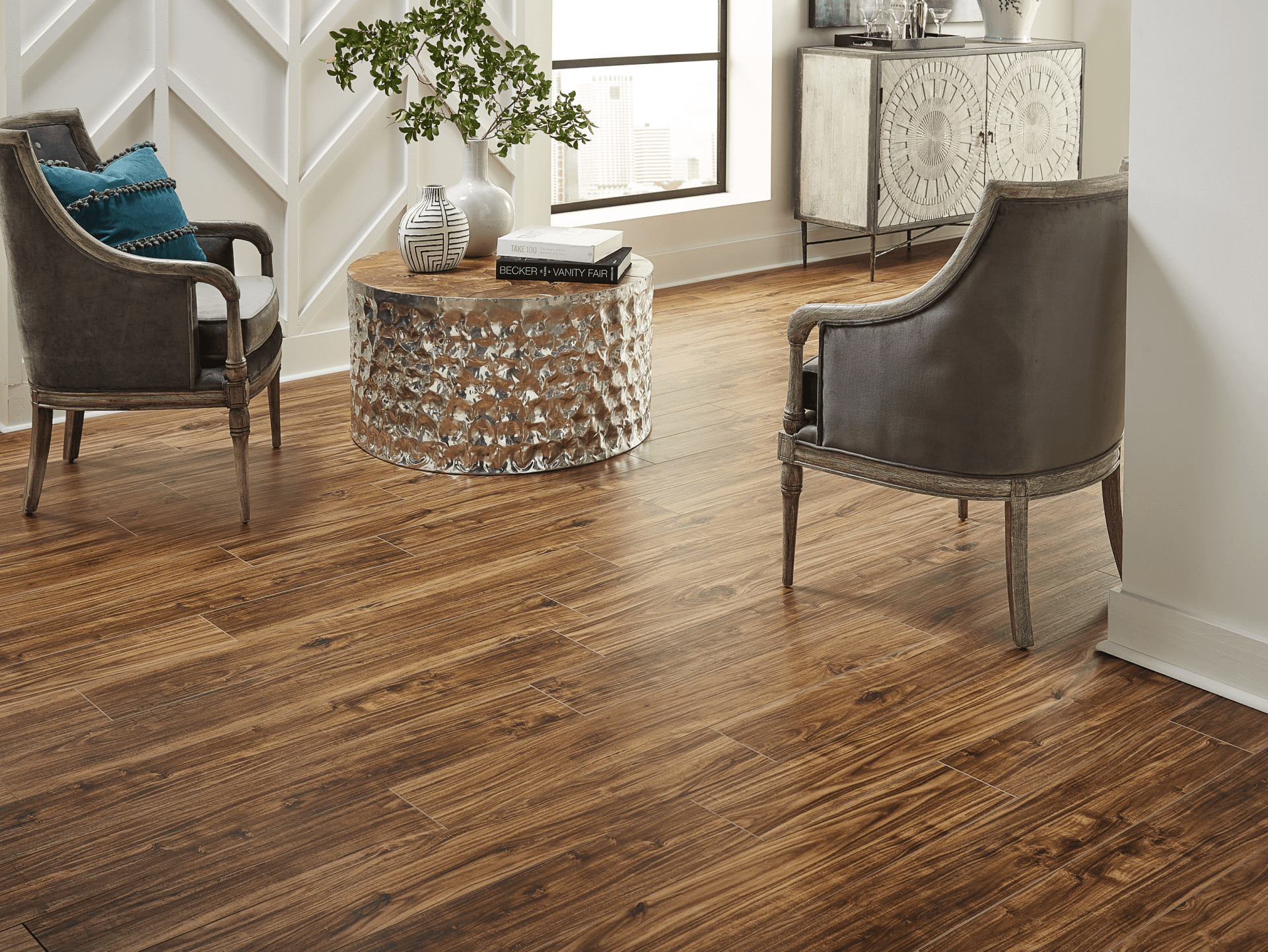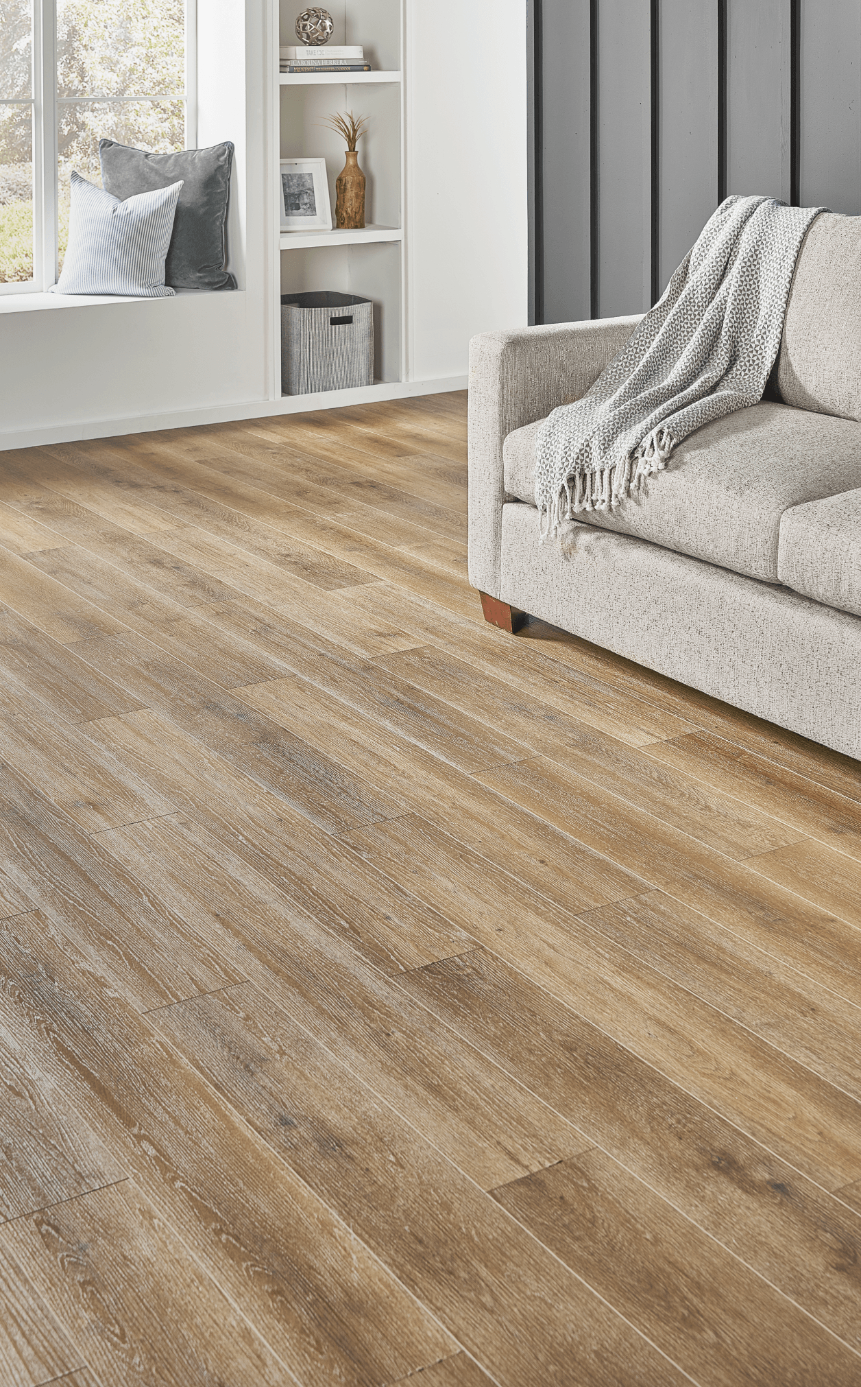 Vineyard is a waterproof, rigid core flooring featuring 7-inch planks with painted bevels for an authentic wood floor appearance. The beautiful hardwood visuals fill the room with warmth and character. The Vineyard Collection is manufactured to the highest standards and features a UniClic™ locking system and a commercial-grade wear-layer for lasting durability and scratch resistance. Perfect for the busy family with children and pets.