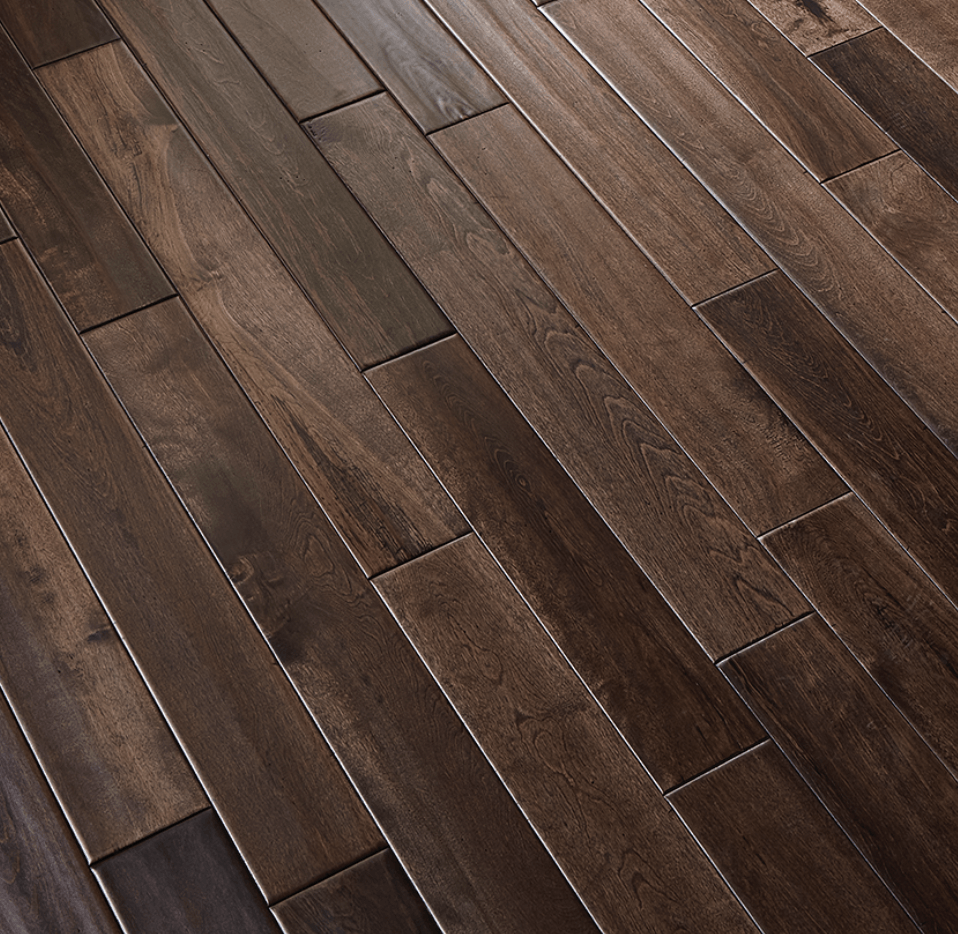 Heritage Plank is one of our most popular series. It features a rustic hand-scraped birch species with artisan chatter marks, wormholes, and pillowed edges in 4 3/4-inch wide planks. It's manufactured to the highest standards using an eco-friendly Treffert® finish with aluminum oxide for added durability and scratch resistance.